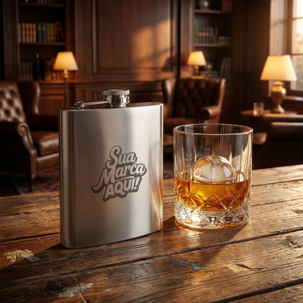 Um brinde sofisticado e marcante, ideal para presentear clientes, parceiros ou colaboradores em ocasiões especiais. Compacto e elegante, o cantil é perfeito para quem valoriza estilo e personalidade, tornando sua marca presente em momentos exclusivos.